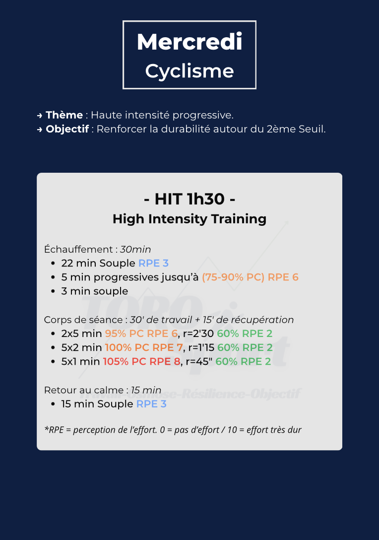 Certaines séances, notamment en vélo, peuvent être plus longues selon les cycles d’entraînement.